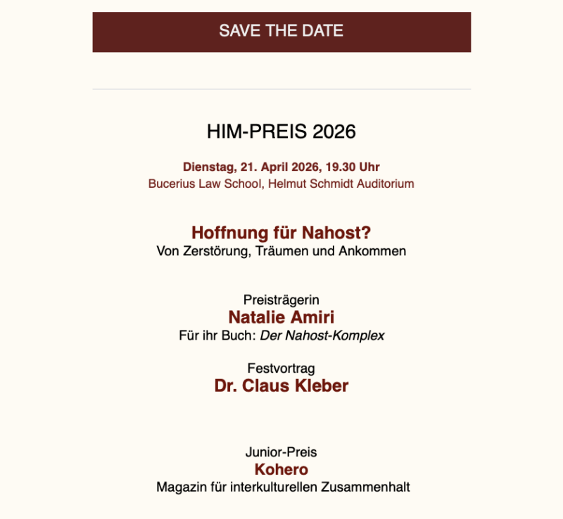 Save the Date: Verleihung HIM-Preis 2026